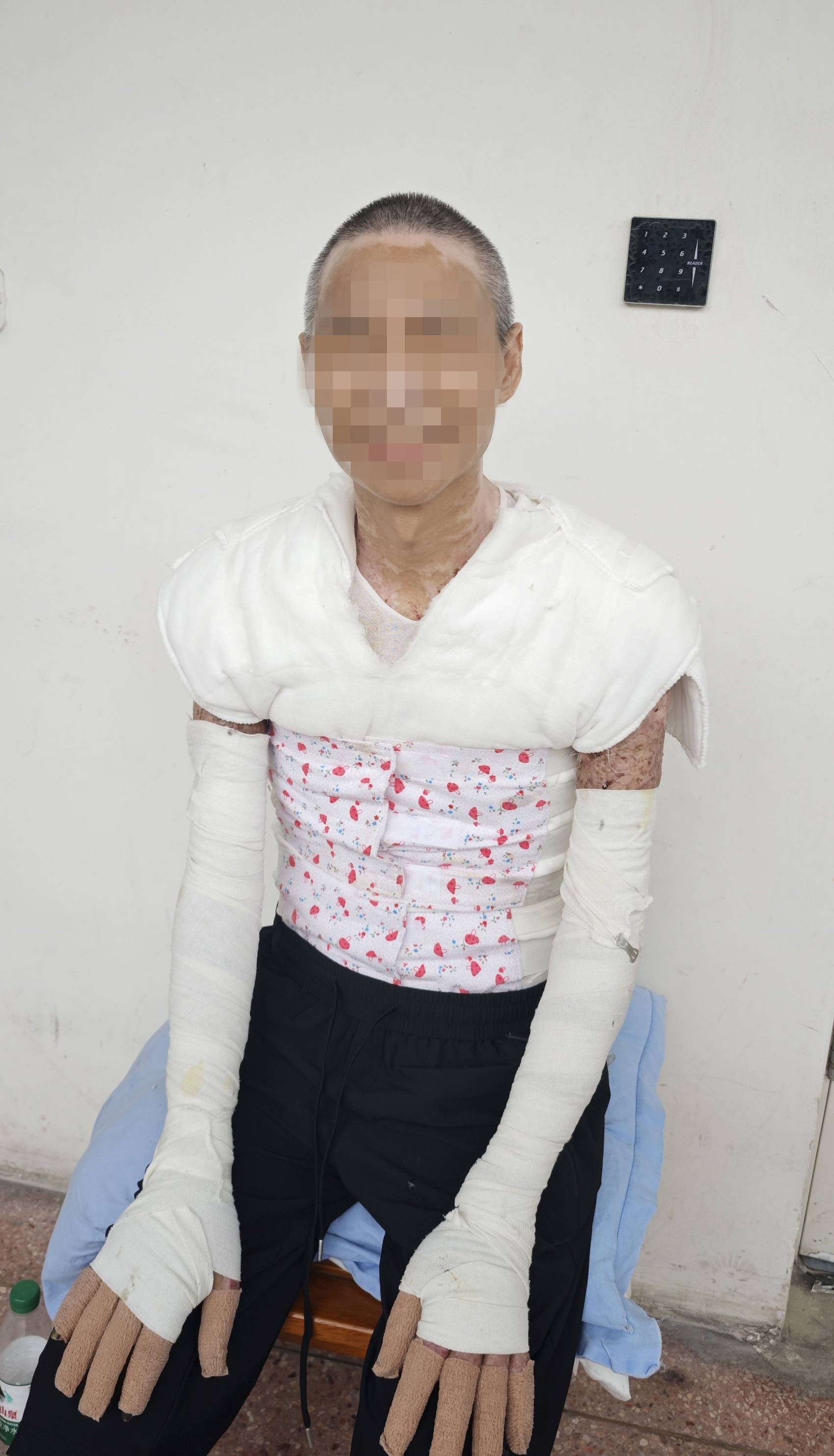 马某入院后,创面“制痂”情况差导致“毒血症”发生,同时肺部严重感染,一场多学科联手攻坚的生死博弈随即展开。“1700 公里的信任,‘这一仗’我们不能输!”攀钢总医院整形烧伤科副主任陈宝国制定“三步”方案:控制创面溶痂速度、分阶段实施植皮手术、同步预防脓毒血症。治疗过程中马某曾因毒血症、重症肺炎两度命悬一线,ICU、呼吸与危重症医学科全力配合,联手攻坚。因特重度贫血,51次输血,输血科保障15970ml血浆、34u红细胞的供应,同时护理团队几班轮守,精心护理。