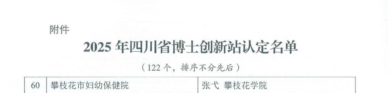 近日,四川省科学技术协会正式公布《2025年四川省博士创新站认定名单》,全省122家单位获批建站。其中,攀枝花市妇幼保健院生殖医学中心成功入选,成为攀西首个医工结合博士创新工作站。