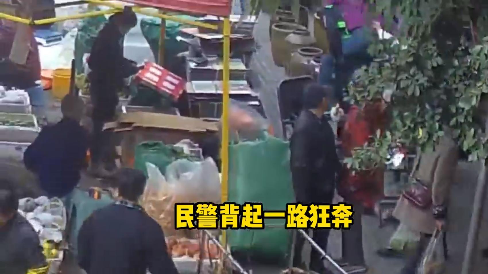 经快速询问得知,两名老人均是前来攀枝花过冬的“候鸟老人”,当天结伴到农贸市场赶集,途中紫色外套老人突然感到头晕目眩,身体无力支撑,当场瘫坐在地无法动弹。同行老人第一时间拨打120急救电话,但赶集日的市场内人流、车流密集,摊位沿街排布,狭窄的通道被完全挤占,救护车根本无法驶入市场内部。