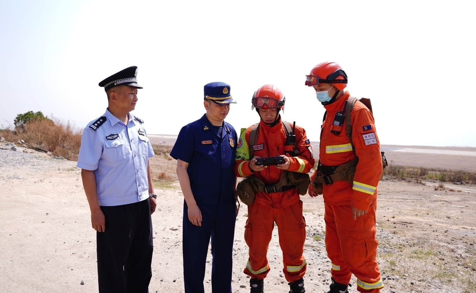 4月30日,仁和大队的消防救援人员在东区机场路附近利用无人机进行勘察。
