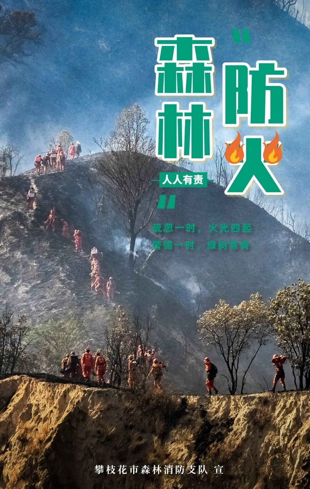 随着近期气温回升,风干物燥,是火灾事故的多发季节,攀枝花地区进入森林防火紧要期。攀枝花市森林消防支队推出森林草原防火海报,呼吁群众参与到森林防火的行动中来,守护绿水青山,携手共创美好家园。
