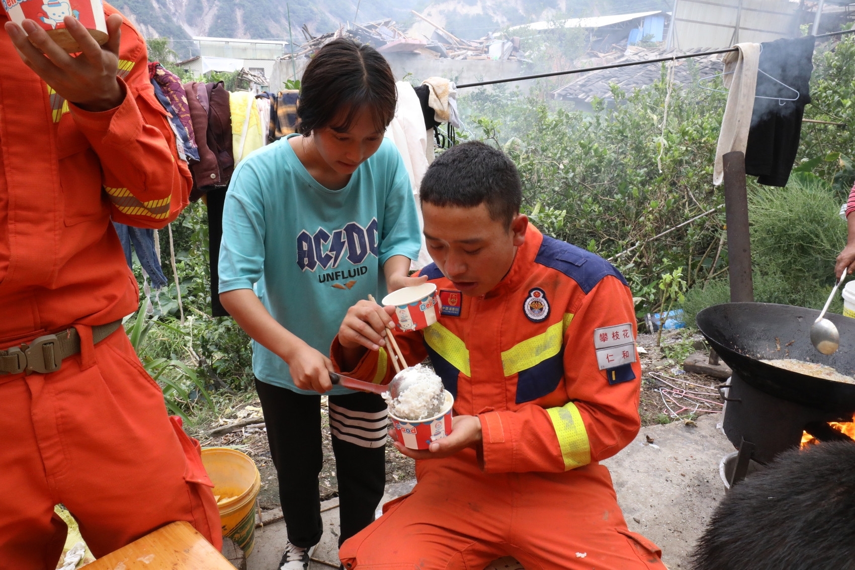 饭菜虽然香甜可口,但大家满脑子想的都是救援。一阵风卷残云后,队员们把村民的炊具洗涮干净,随即便投入紧张的搜救排查中。