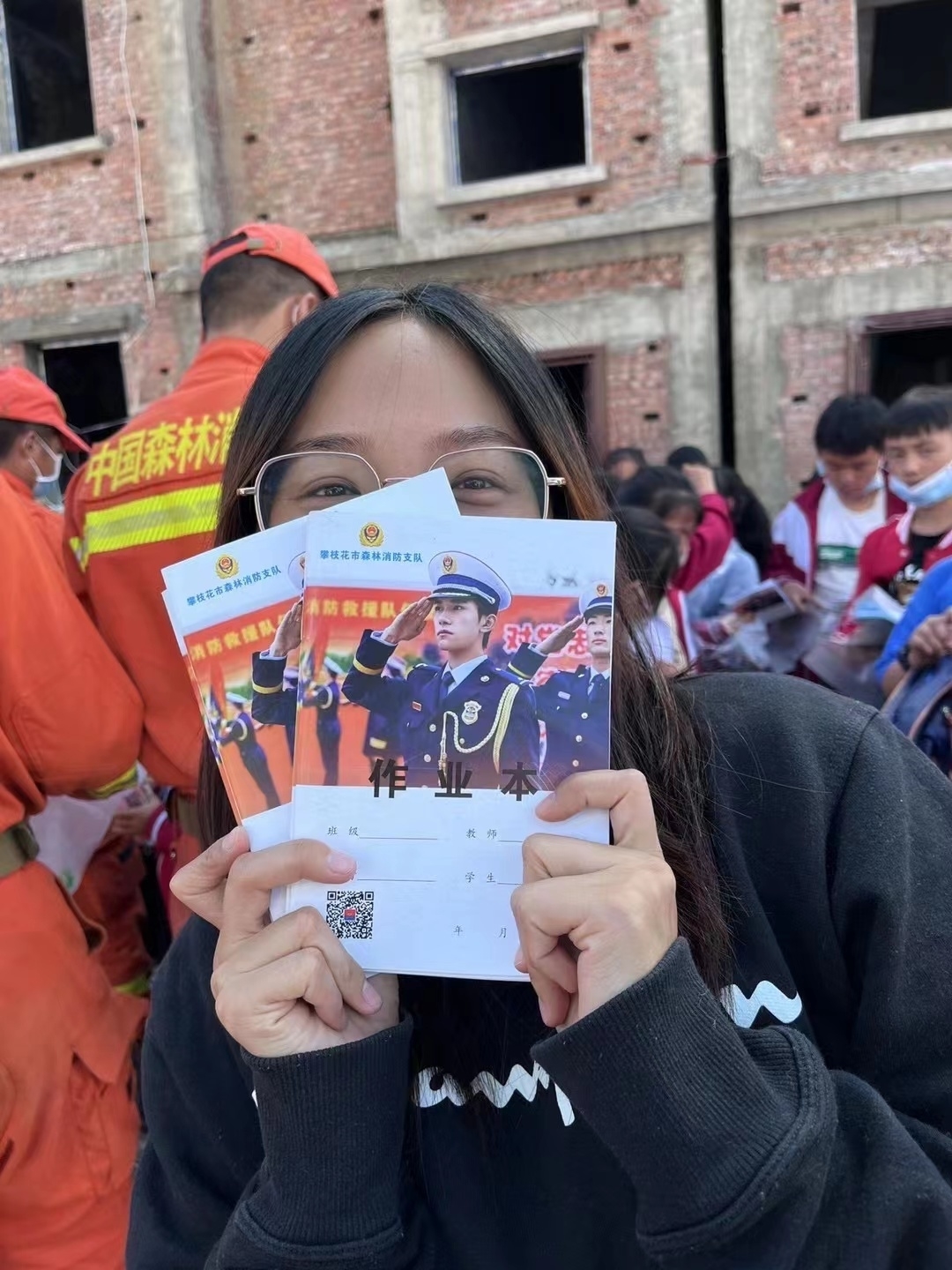 学生们收到攀枝花市森林消防支队送去的作业本。