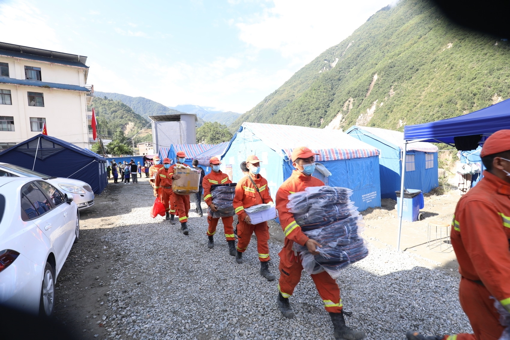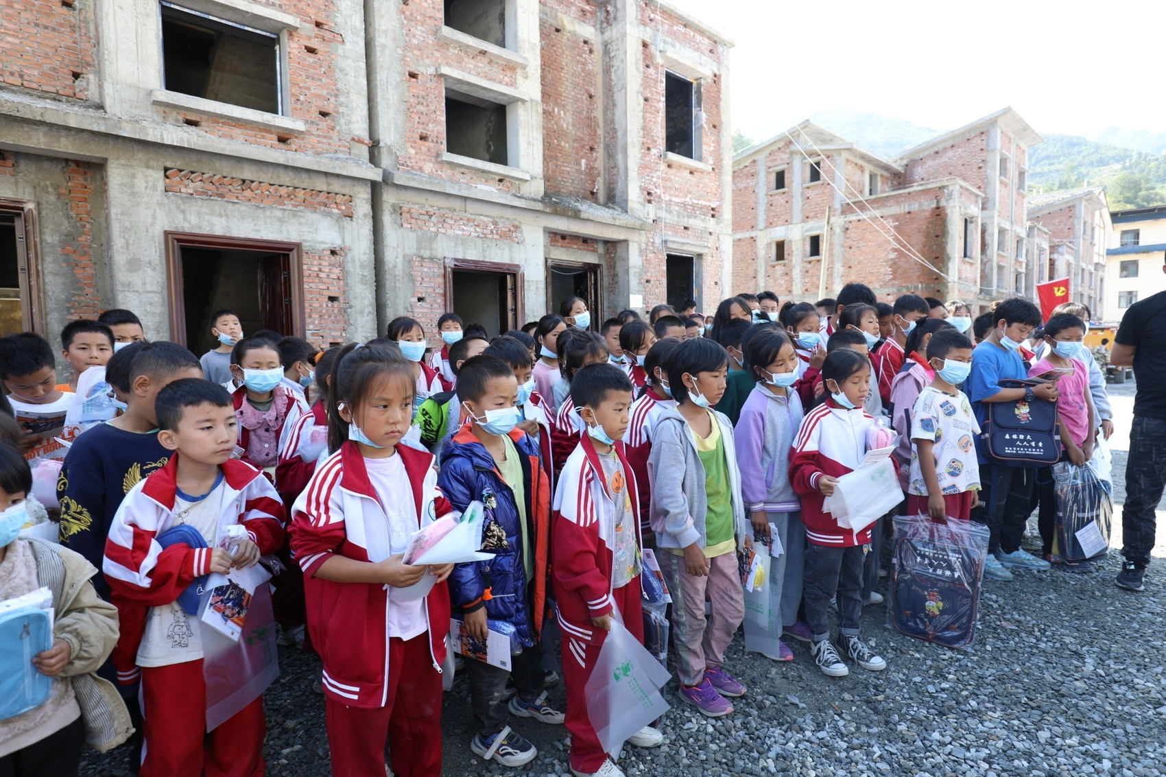 除此之外,了解到部分学生因地震缺失学习用品,救援人员及时为学生们送去了书包、文具袋和作业本。同时,救援人员还帮助爱国村安置点做好防疫工作,对安置点区域进行消杀工作。