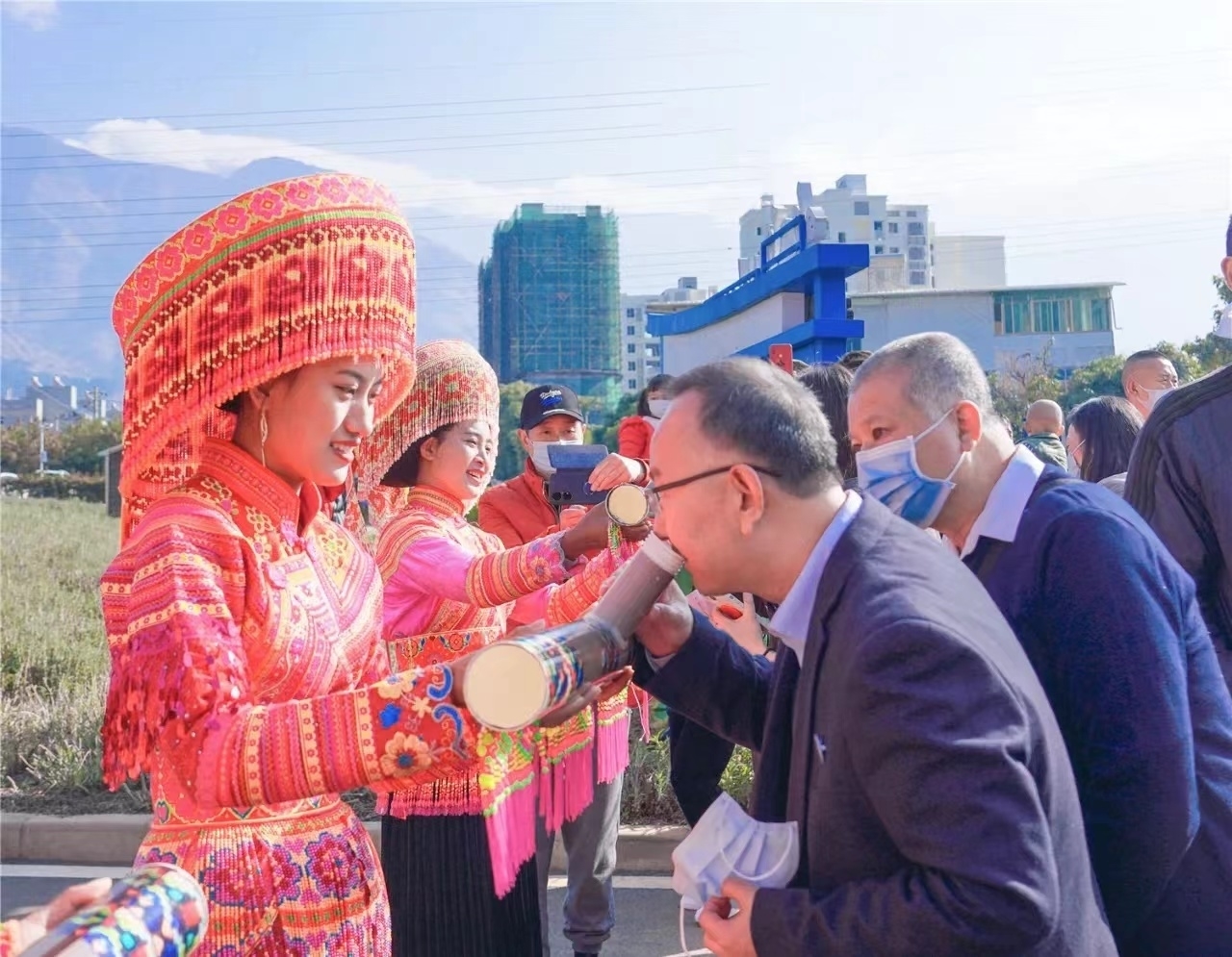 游客体验当地傈僳族民俗。(米易县融媒体中心供图)