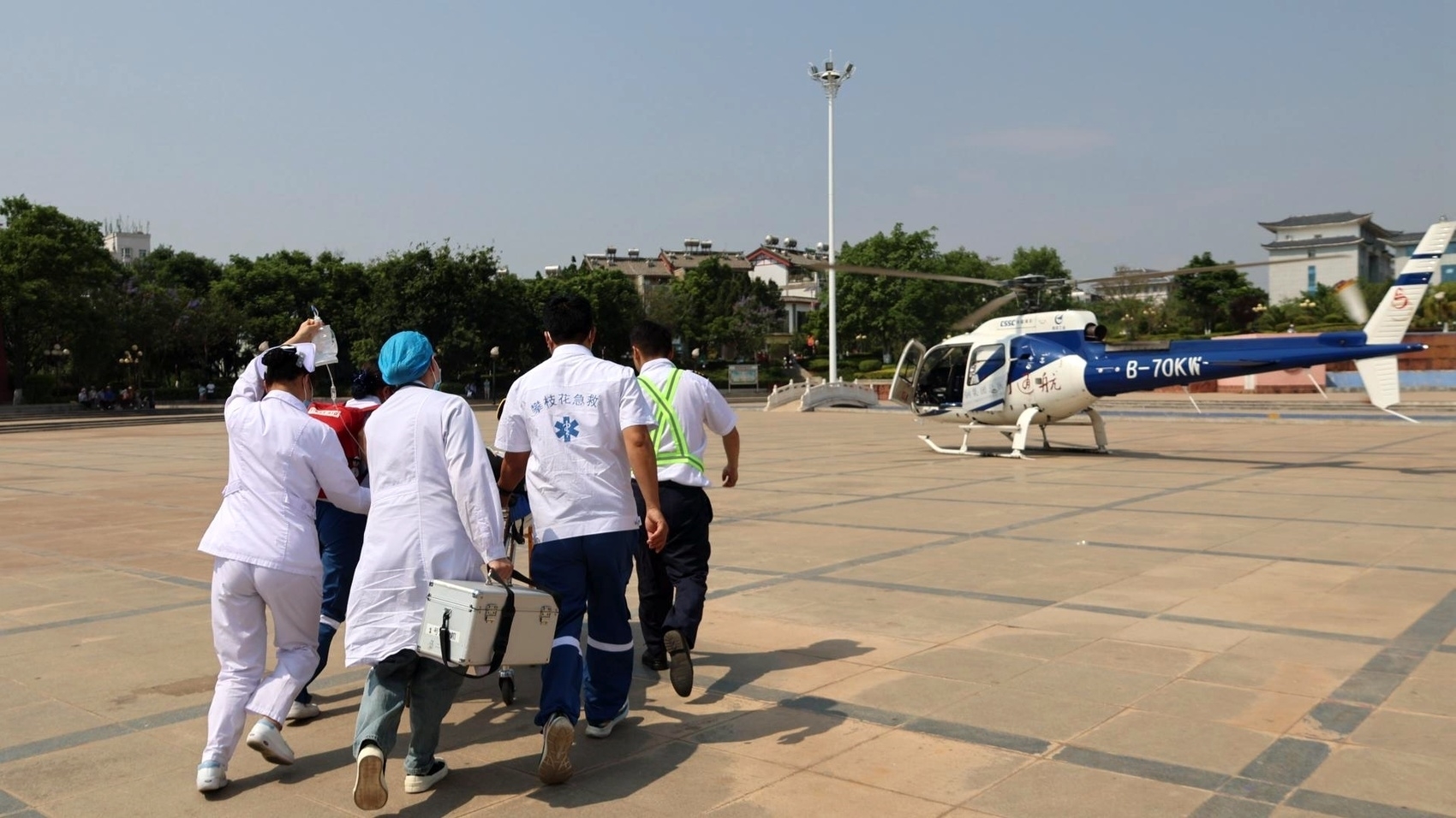 攀钢总医院“空中120”救护人员跨区域救援病患。 湛璐霜 摄