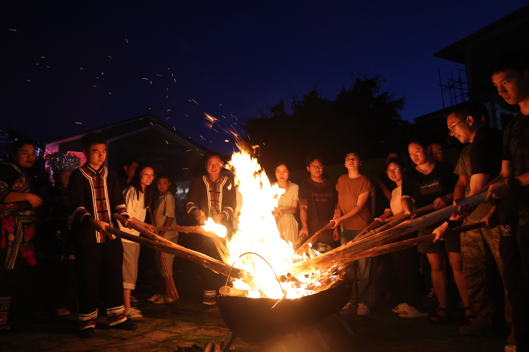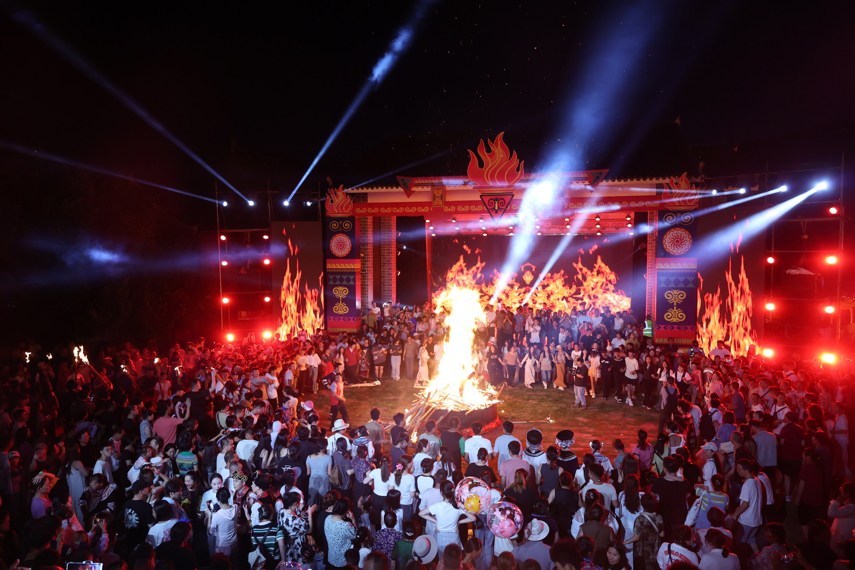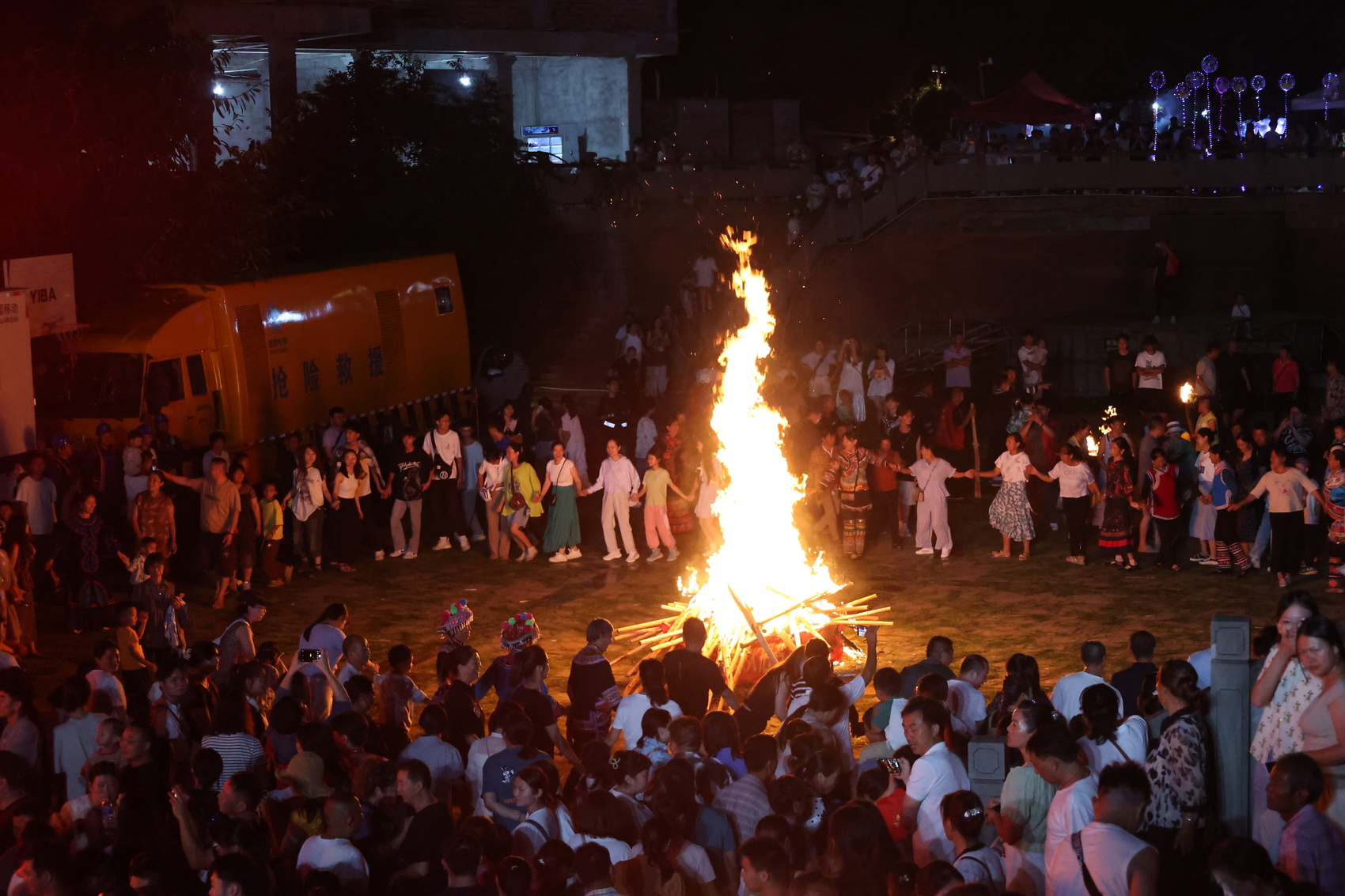 祭火大典现场,俚颇彝族小型舞蹈诗《彝火永生》在迤沙拉村民族文化广场首演,当毕摩持法铃吟诵彝语古歌开场,瞬间吸引了全场目光。在平地镇之外,还有前进镇、福田镇、同德镇、啊喇彝族乡、大龙潭彝族乡、太平乡等10余个点位燃情狂欢,从7月18日持续至20日,不论你在乡村还是城市商圈,都可就近参与。