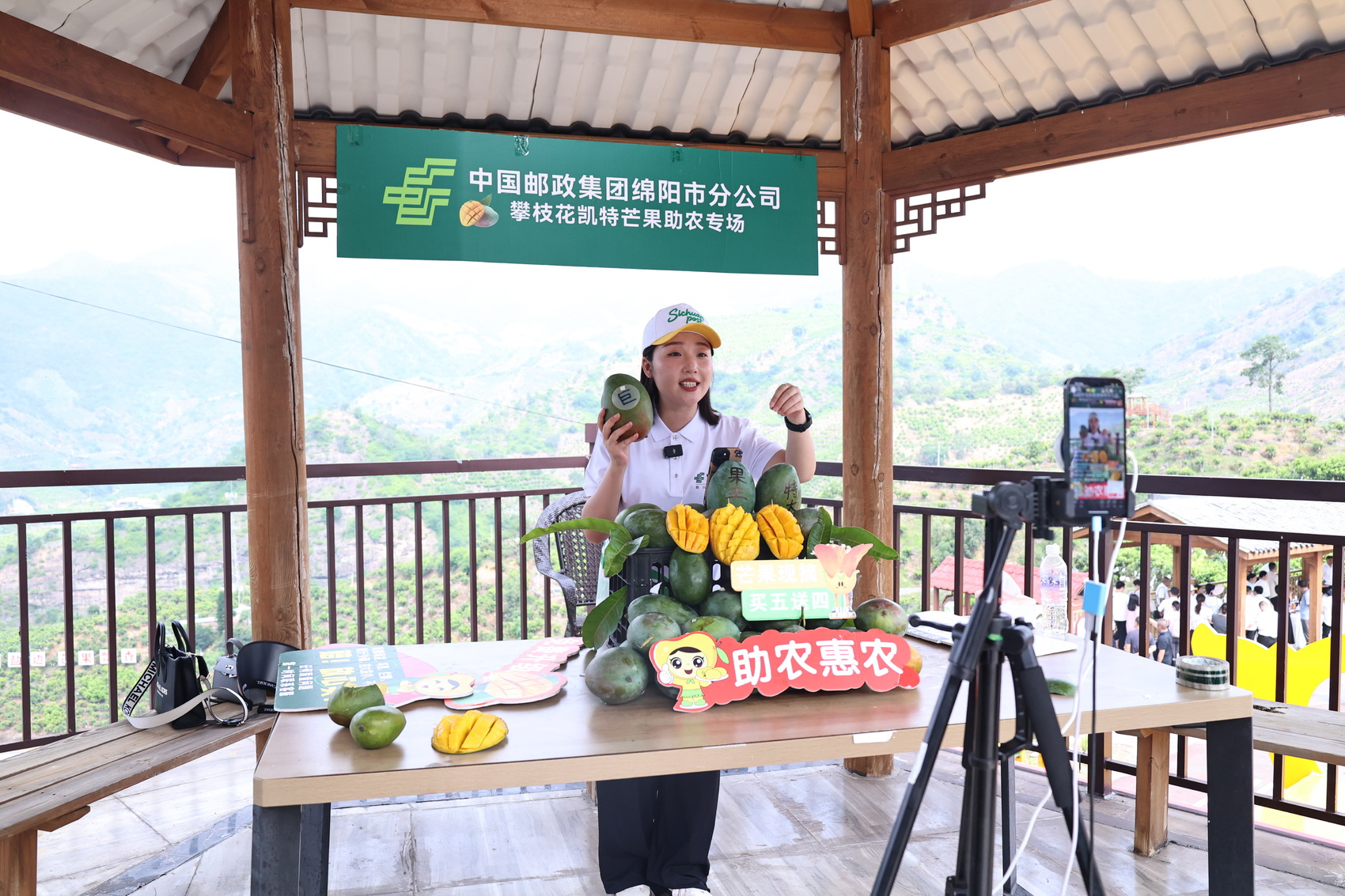 芒果树下,一部手机、一盏补光灯,不一会儿,绵阳邮政直播领队郑雯的直播间里已经涌进两千多人。