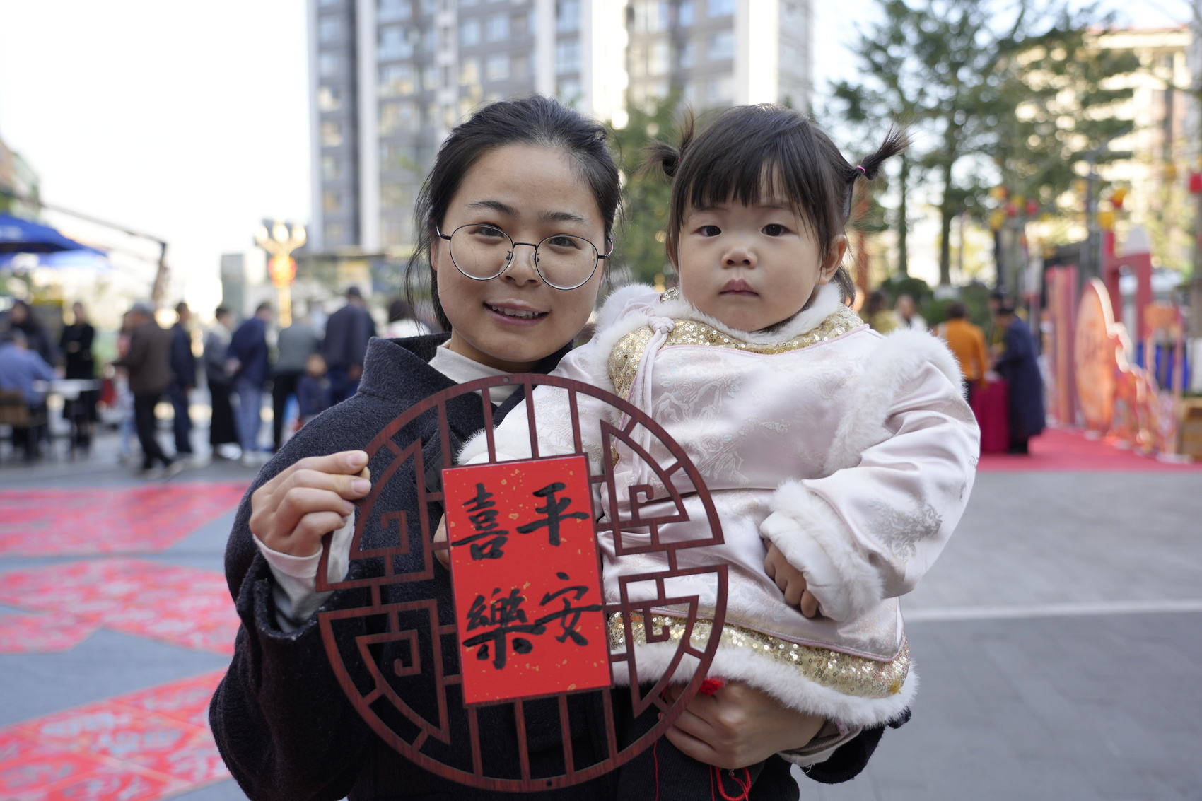 活动现场,民谣乐队的歌声、游戏的喝彩声、家人的欢笑声交织成一首喜庆的新春交响曲。