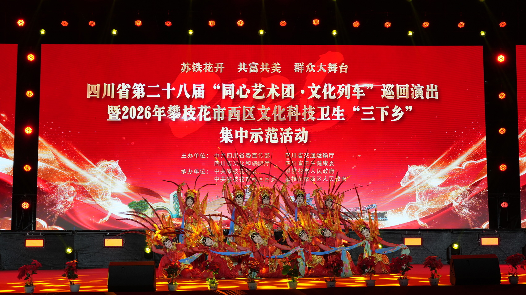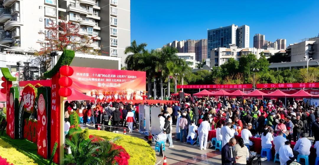 “同心同愿同欢乐,我们同享阳光灿烂……”2月11日,随着“同心艺术团”主题曲《同心同愿》在盐边县桐子林镇昌意广场响起,2026年四川省文化科技卫生“三下乡”集中示范活动圆满落下帷幕。而集中示范活动带来的惠民热潮,正在金沙江畔的攀枝花持续浪涌。