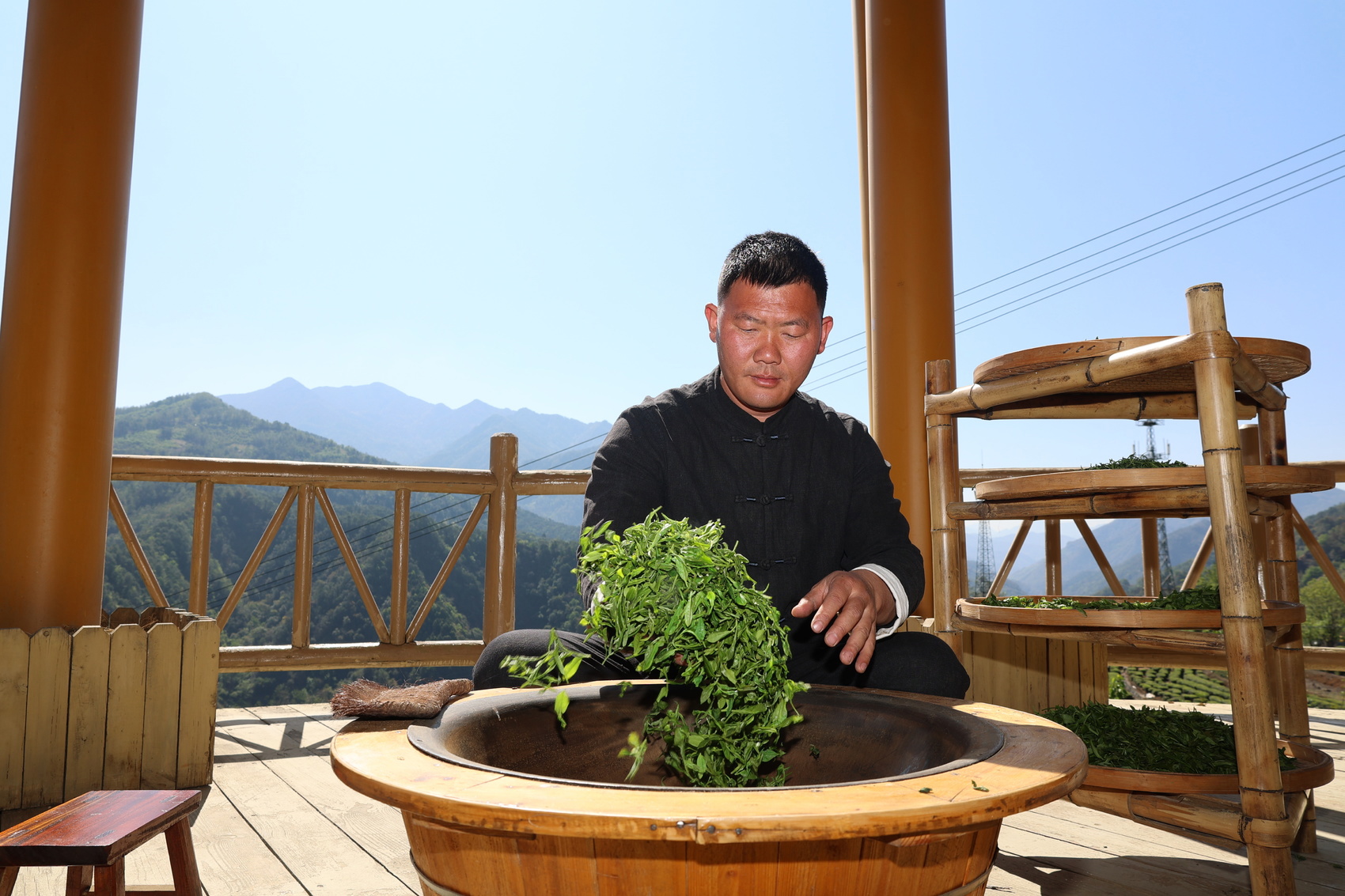 “220度以上的高温,茶叶倒进去翻炒,手要快,不能停!”赛场之外,游客体验区的热闹程度丝毫不减。来自会理市的虞惠一家四口正围在制茶锅前,在笮⼭若水国胜茶庄⾮遗⼯坊负责人罗顺兵的指导下体验杀青。在另一侧的品鉴专区,绿茶、红茶、白茶、生茶……国胜乡的茶企展示着各种“拳头产品”。