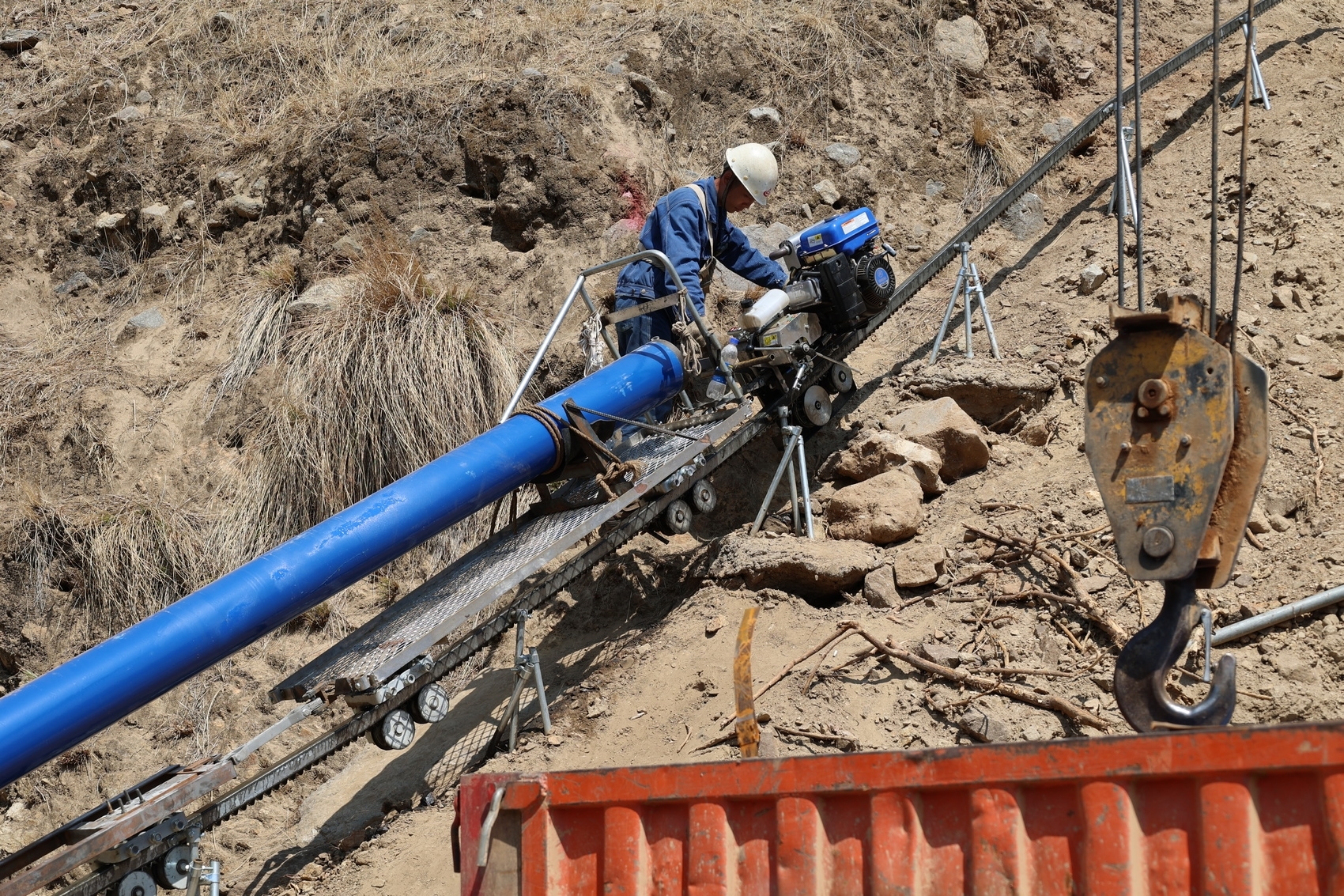 据了解,施工方采取无人机“空运”、半山腰建滑槽两种方式,运送混凝土、砂石,完成14座支镇墩建设,打通了“引水上山”的关键环。