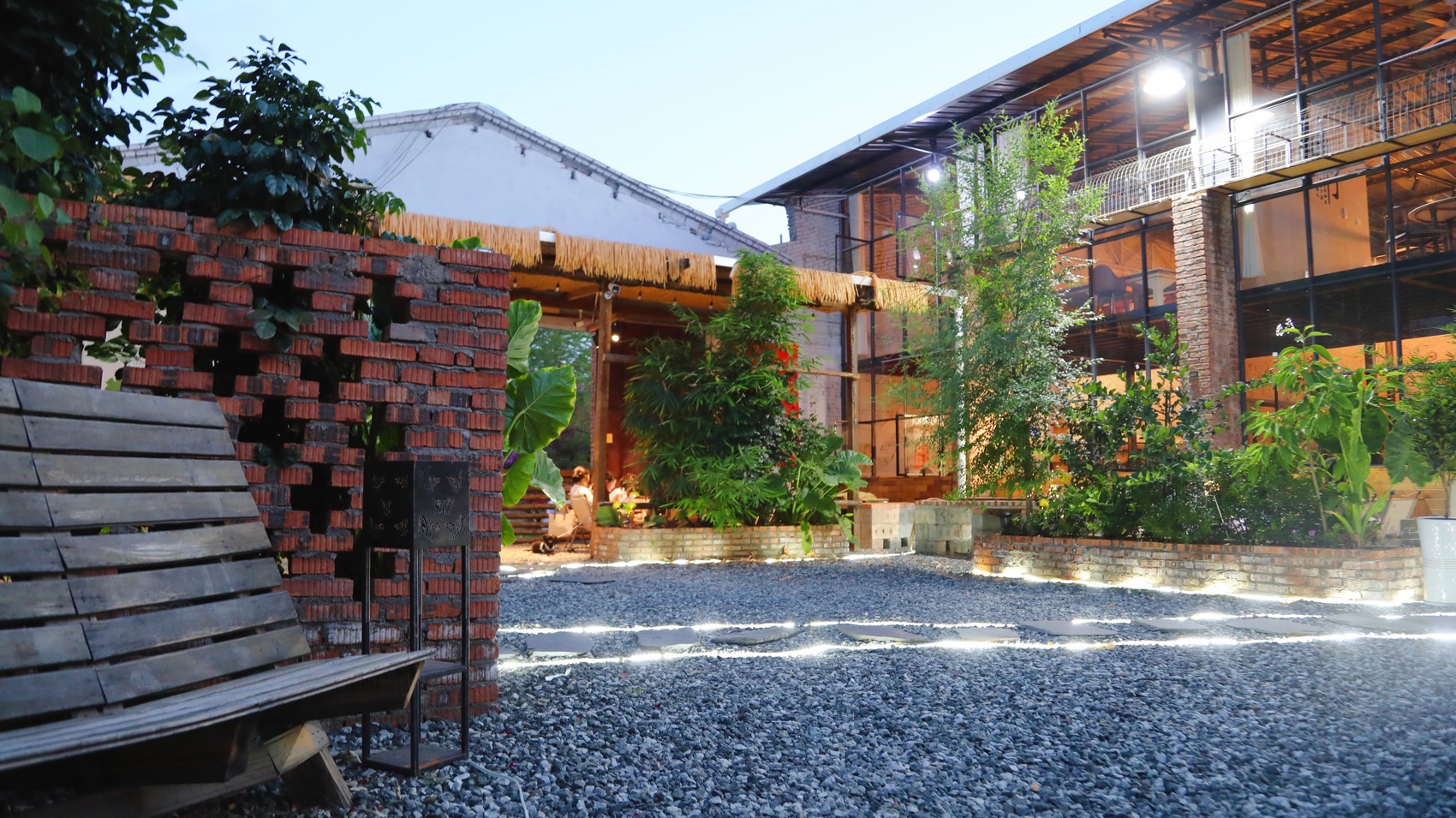 这座旧粮厂是不少盐边人熟悉的地标。改造中,原有砖墙、屋架得以保留,仅做加固清理,同时融入灯光系统、园艺布置与软装陈设,营造新旧交融、别具一格的空间美感。