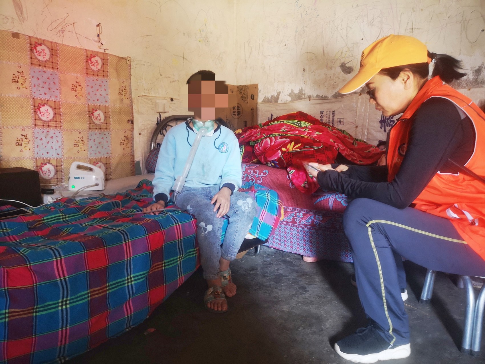 后来,李明香成为了米易县乐阳社会工作者协会的一名志愿者。2022年3月12日,在一次困境儿童入户调查中,她第一次见到了小贤。“很难不注意到小贤,当时他独自一人坐在屋角,气管切开后的他喉咙上插着一个手臂长度的软管。”