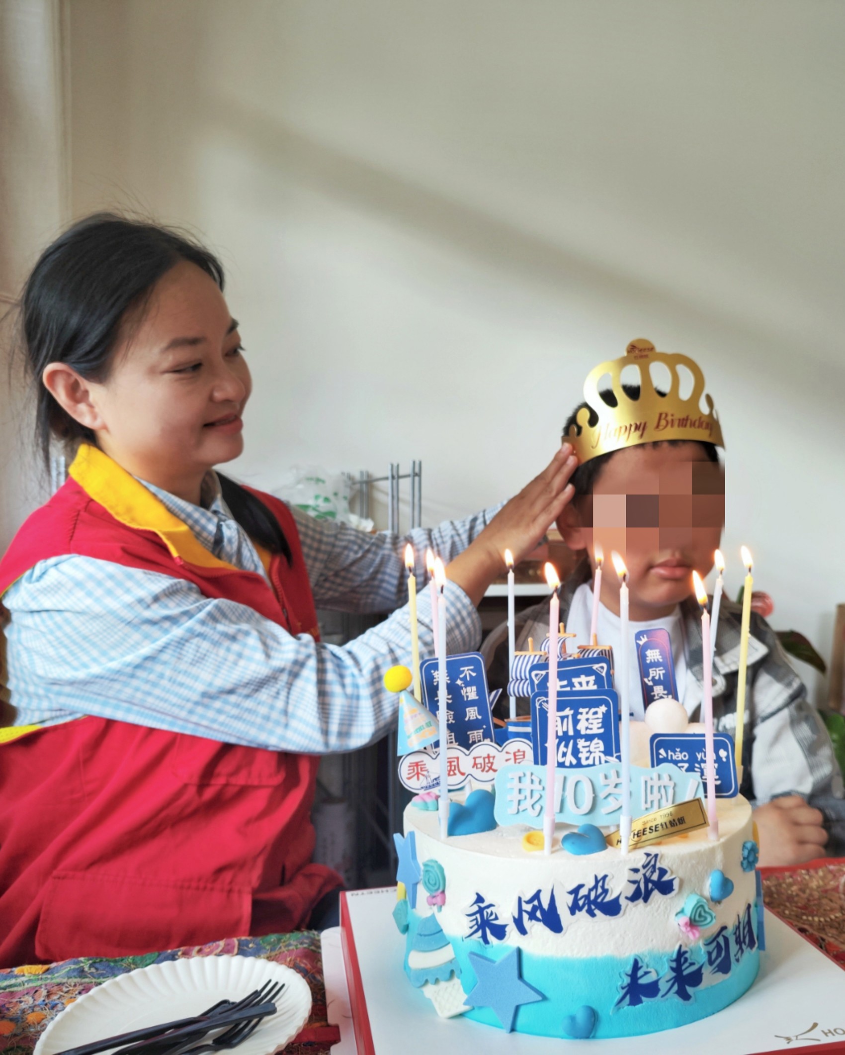 从那以后,李明香便决定成为小贤的“爱心妈妈”,时常去看望他,给他买文具、添新衣。“但我知道,我还没完全走进他的心,他看向我的眼神总是胆怯不安。”李明香说,改变发生在一次“六・一”国际儿童节活动上,她带着礼物到学校陪小贤过节。那一天望向李明香的小贤,眼神突然亮了,露出了灿烂笑脸。“那一刻,我感觉所有的付出都值得了。”