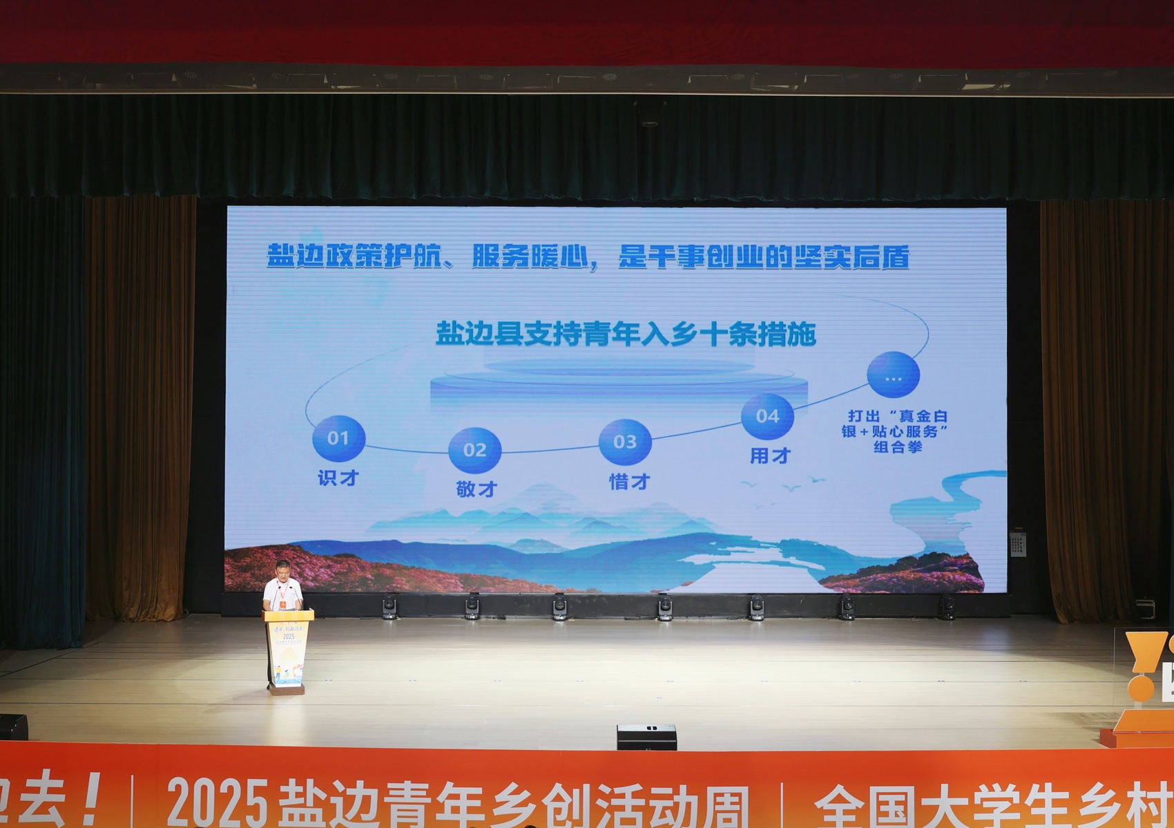 8月15日,“2025盐边青年乡创活动周·全国大学生乡村振兴大赛盐边专项训练营”启动,现场正式推出“四乡五里·智汇盐边”人才品牌,发布《盐边县支持青年入乡十条措施》,打出“真金白银+贴心服务”的招才引智组合拳。