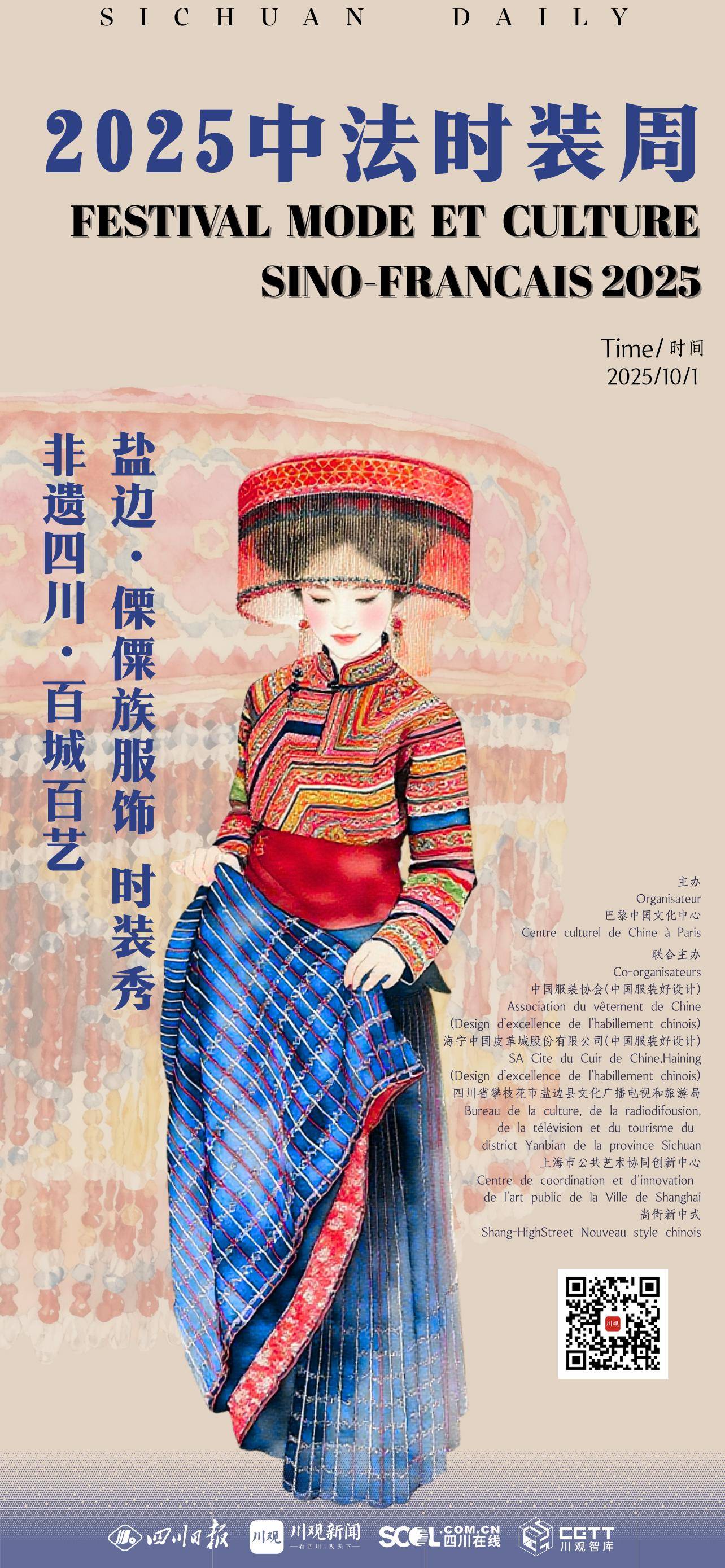 2025年10月1日,四川攀枝花盐边·傈僳族服饰作为“非遗四川·百城百艺”项目代表,在巴黎中国文化中心主办的2025中法时装周上首次亮相,与巴黎高定品牌INCLOVER联袂呈现主题大秀。此次展示以“文化解码+现代重构”为核心理念,通过非遗代表性传承人与设计师的深度协作,将傈僳族传统服饰的生态智慧、古老技艺与当代时尚融合,当东方古老智慧与西方现代设计交织,一场穿越时空的文明对话在T台上璀璨绽放。