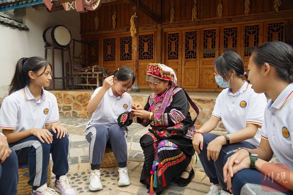 结合中小学生年龄和兴趣特点,该区7所中小学将非遗与延时服务、兴趣社团相结合,开设金沙漆画、剪纸、版画等10余项非遗课程。