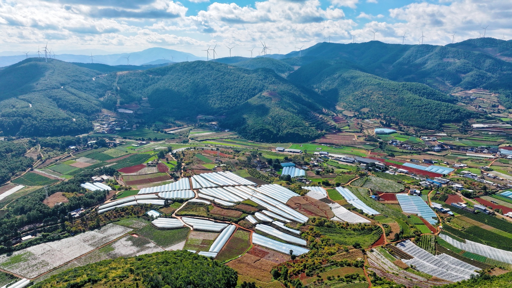 仁和区大龙潭彝族乡干坝子村成片的大棚蔬菜