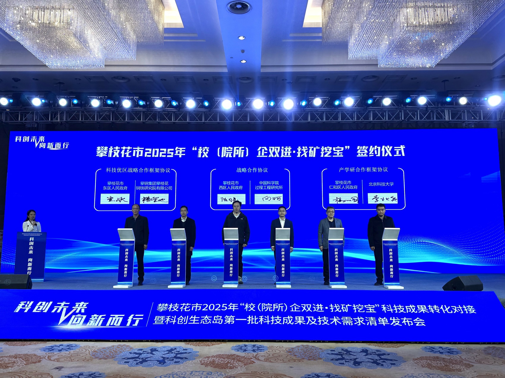 这场大会名叫攀枝花市2025年“校(院所)企双进·找矿挖宝”科技成果转化对接暨科创生态岛第一批科技成果及技术需求清单发布会,由中共攀枝花市委、攀枝花市人民政府主办,攀枝花市科学技术局、攀枝花市东区人民政府承办。