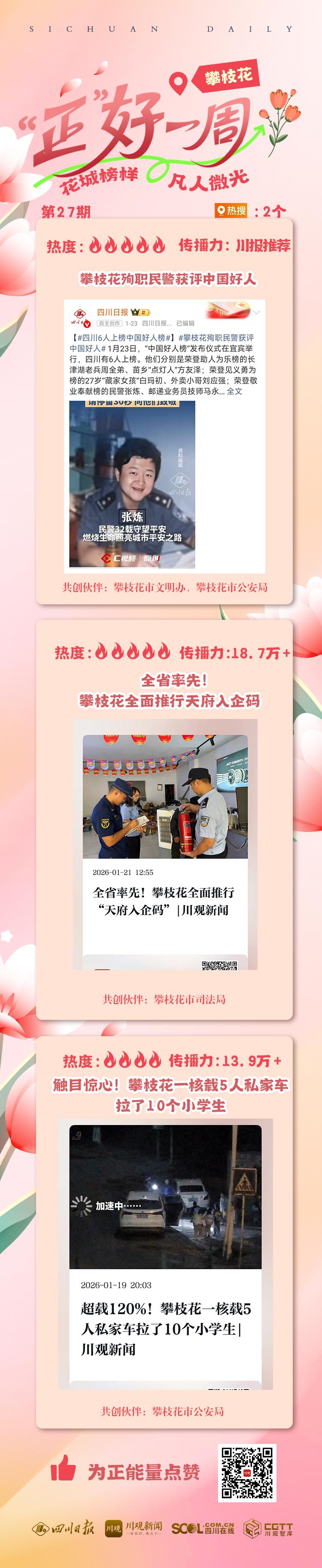 1月23日,“中国好人榜”发布仪式在宜宾举行,四川有6人上榜。其中,攀枝花民警张炼入选。张炼出差办案时因连续高强度工作突发疾病,因公牺牲,2025年9月,被四川省委追授为“四川省优秀共产党员”。