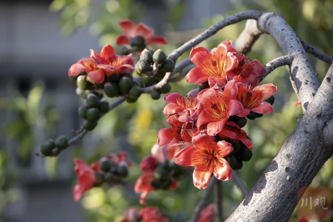 攀枝花(木棉花)灼灼绽放,以热烈之姿迎接八方远客;炮仗花、黄花风铃木、三角梅……满城芳华。