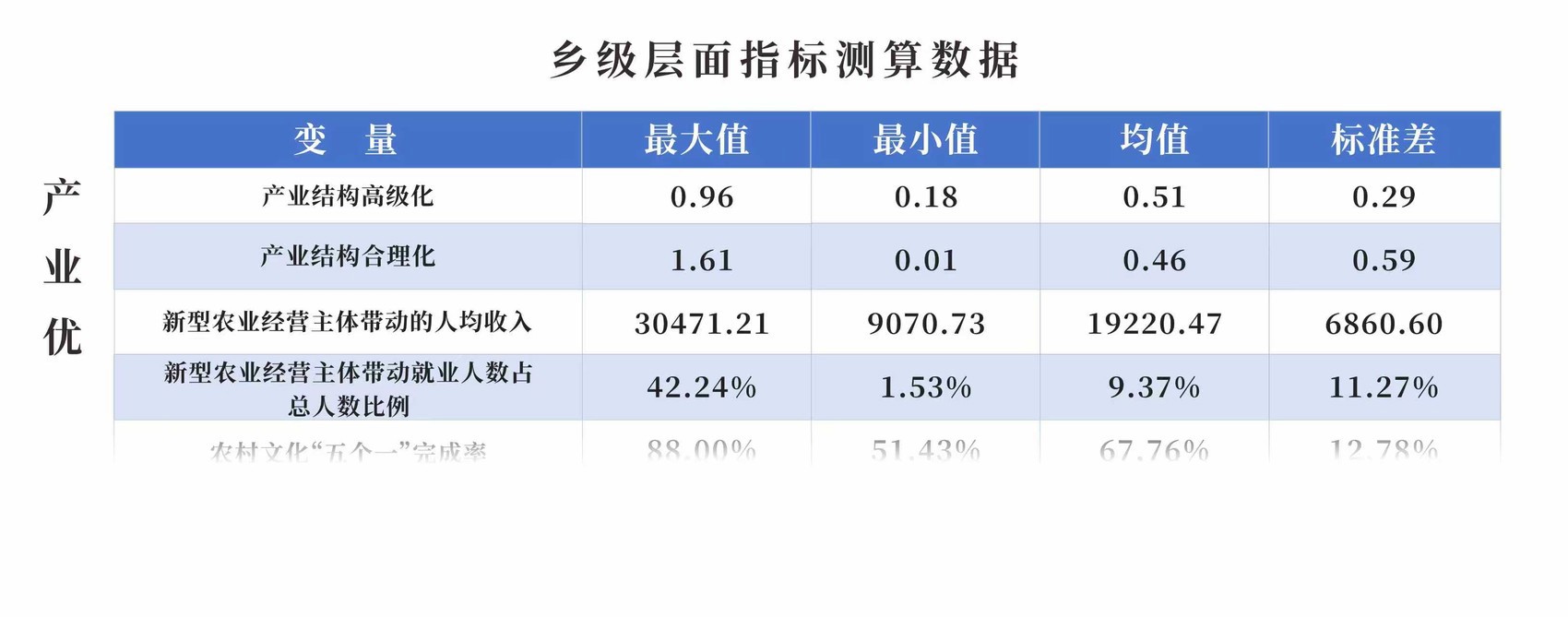 “户夯实”指数均值94.54,基础设施和居住环境整体较好,农村居民收入水平稳步提升,但家庭收入渠道相对单一,需拓展多元增收路径。
